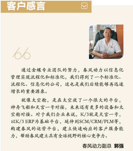 已將40多個(gè)涉及財(cái)務(wù)、供應(yīng)鏈、生產(chǎn)等各個(gè)業(yè)務(wù)領(lǐng)域的業(yè)務(wù)流程固化在K/3系統(tǒng)中