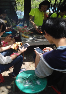 中午11時(shí)左右,下山的客戶朋友稍作休息后就迫不及待來(lái)到燒烤場(chǎng),準(zhǔn)備享受美味的食物。