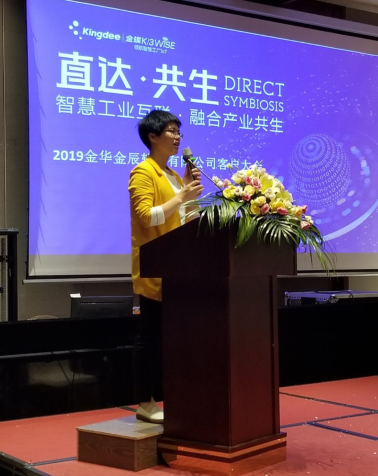 首先由金華金辰軟件有限公司副總經(jīng)理 倪小紅女士致辭,倪總回顧了金蝶的發(fā)展之路,并展望了未來的全新趨勢,表達(dá)了對到場所有客戶的感謝之情,也對金華金辰的發(fā)展指明了方向。