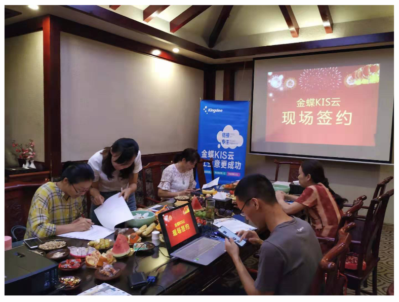 接下來由金蝶蝶金云計(jì)算有限公司浙江省區(qū)渠道事業(yè)部霍偉偉先生詳細(xì)介紹金蝶KIS云產(chǎn)品以及云普惠的相關(guān)政策。期間,客戶積極發(fā)言,表達(dá)了對云產(chǎn)品尤其是云安全方面的一些看法,現(xiàn)場討論非常熱烈。其中一位客戶直接現(xiàn)場簽約,購買了一套KIS云商貿(mào)版產(chǎn)品??梢姡蛻魧υ飘a(chǎn)品的認(rèn)可。