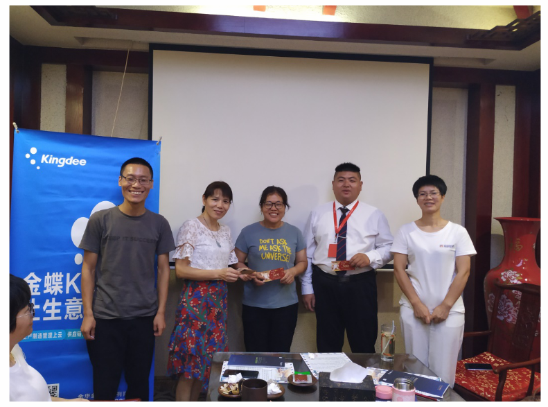 在熱烈討論結(jié)束后,安排了抽獎(jiǎng)環(huán)節(jié)。由霍偉偉先生抽出三個(gè)三等獎(jiǎng),并與幸運(yùn)客戶合照留念。感謝客戶一直以來對我公司的支持,對金蝶產(chǎn)品的信賴。