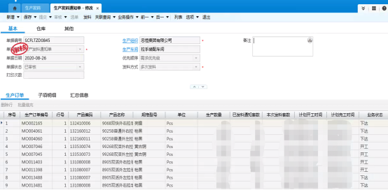 通過(guò)生產(chǎn)發(fā)料單選單的方式對(duì)生產(chǎn)訂單的周計(jì)劃(可不限于周計(jì)劃)排單以及領(lǐng)料控制,將線下的排單過(guò)程轉(zhuǎn)移到線上,并可以根據(jù)周計(jì)劃進(jìn)行領(lǐng)料控制,針對(duì)生產(chǎn)發(fā)料的二次開(kāi)發(fā),增加了領(lǐng)料倉(cāng)庫(kù)的修改及零庫(kù)存物料的領(lǐng)料單生成,增加了軟件操作的靈活性,更便于員工操作。