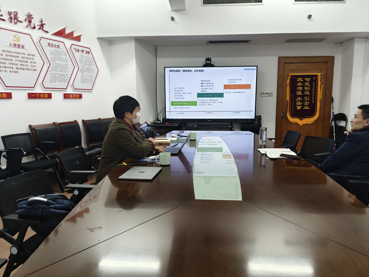和金華市經(jīng)信局數(shù)字經(jīng)濟處施處長做了匯報和交流,施處對金華金辰軟件有限公司目前取得的成績給予了認