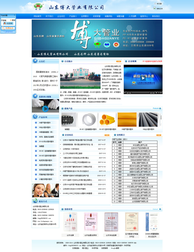 公司是中國(guó)城市燃?xì)鈪f(xié)會(huì)、中國(guó)塑料加工工業(yè)協(xié)會(huì)塑料管道專業(yè)委員會(huì)會(huì)員單位。公司被評(píng)為全國(guó)誠(chéng)信守法民營(yíng)企業(yè)、全國(guó)重質(zhì)量守信譽(yù)先進(jìn)單位、山東省高新技術(shù)企業(yè)、山東省重合同守信用企業(yè)、山東省消費(fèi)者信得過單位、日照市優(yōu)秀民營(yíng)科技企業(yè)、日照市AAA信用企業(yè)、日照市行業(yè)領(lǐng)軍品牌、日照市質(zhì)量管理先進(jìn)企業(yè)。公司生產(chǎn)的“博源”牌系列產(chǎn)品榮獲“山東名牌”、“山東著名商標(biāo)”“知名品牌”稱號(hào)。